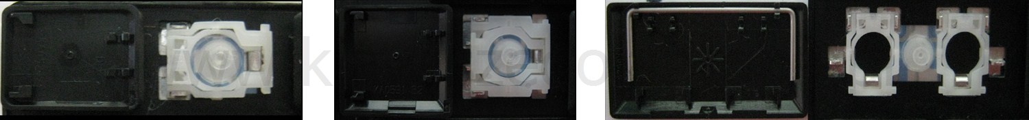 *Zdarza się, że w poszczególnych modelach klawiatury stosuje się więcej typów mocowań niż te trzy pokazane na zdjęciach; niektóre klawisze mają też metalowe zawiasy.