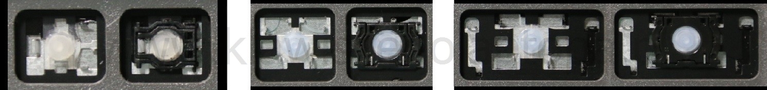 *Zdarza się, że w poszczególnych modelach klawiatury stosuje się więcej typów mocowań niż te trzy pokazane na zdjęciach; niektóre klawisze mają też metalowe zawiasy.