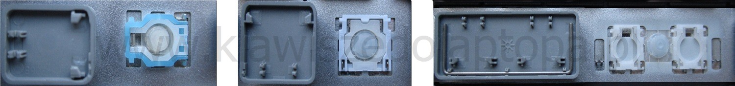 *Zdarza się, że w poszczególnych modelach klawiatury stosuje się więcej typów mocowań niż te trzy pokazane na zdjęciach; niektóre klawisze mają też metalowe zawiasy.