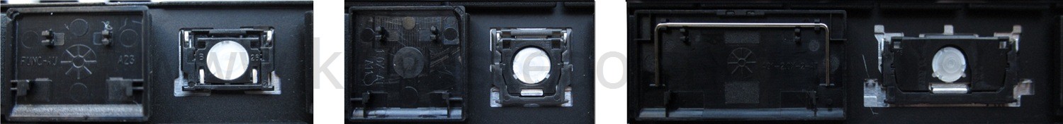 *Zdarza się, że w poszczególnych modelach klawiatury stosuje się więcej typów mocowań niż te trzy pokazane na zdjęciach; niektóre klawisze mają też metalowe zawiasy.
