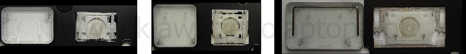 *Zdarza się, że w poszczególnych modelach klawiatury stosuje się więcej typów mocowań niż te trzy pokazane na zdjęciach; niektóre klawisze mają też metalowe zawiasy.