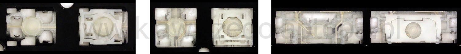 - W większości klawiatur wyglądających identycznie z zewnątrz stosowane były różne typy mocowań pod klawiszami.