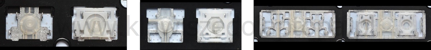 - W większości klawiatur wyglądających identycznie z zewnątrz stosowane były różne typy mocowań pod klawiszami.