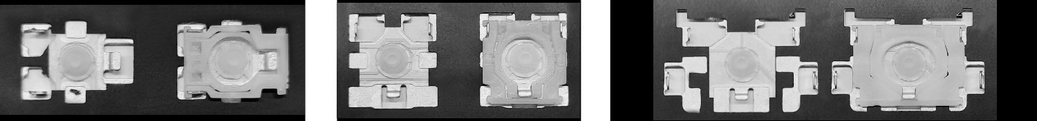 *Zdarza się, że w poszczególnych modelach klawiatury stosuje się więcej typów mocowań niż te trzy pokazane na zdjęciach; niektóre klawisze mają też metalowe zawiasy.
