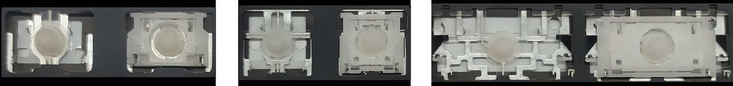 *Zdarza się, że w poszczególnych modelach klawiatury stosuje się więcej typów mocowań niż te trzy pokazane na zdjęciach; niektóre klawisze mają też metalowe zawiasy.