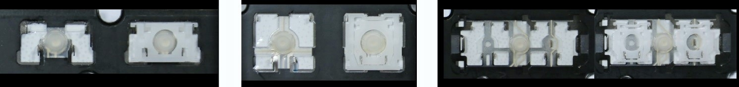 - W większości klawiatur wyglądających identycznie z zewnątrz stosowane były różne typy mocowań pod klawiszami.
