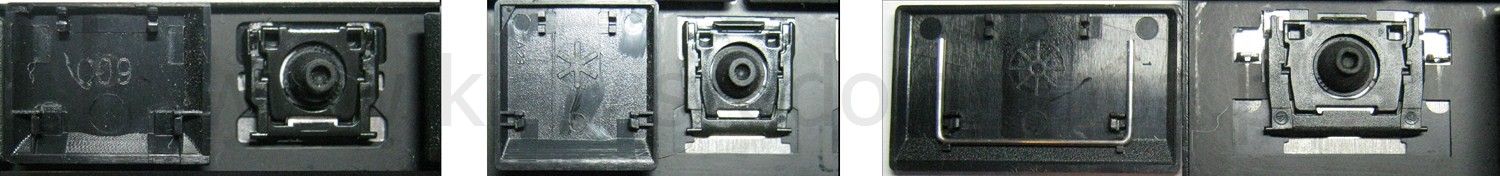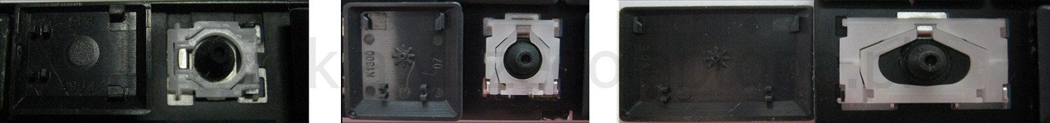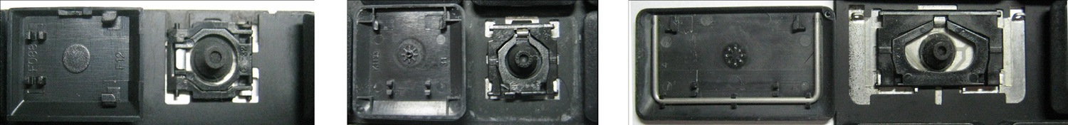 *Zdarza się, że w poszczególnych modelach klawiatury stosuje się więcej typów mocowań niż te trzy pokazane na zdjęciach; niektóre klawisze mają też metalowe zawiasy.