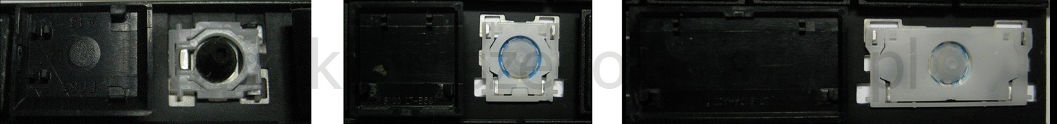 - Aby wybrać właściwy model, porównaj zdjęcie pustego miejsca na swojej klawiaturze ze zdjęciami poniżej, ewentualnie zdejmij klawisz „A” - pod nim zawsze jest zaczep średni.