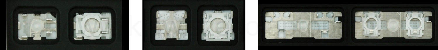 - W większości klawiatur wyglądających identycznie z zewnątrz stosowane były różne typy mocowań pod klawiszami.