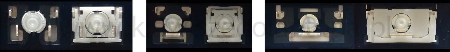 - W większości klawiatur wyglądających identycznie z zewnątrz stosowane były różne typy mocowań pod klawiszami.