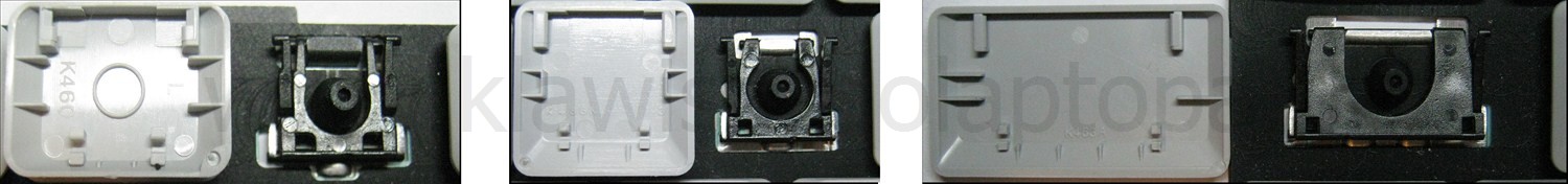*Zdarza się, że w poszczególnych modelach klawiatury stosuje się więcej typów mocowań niż te trzy pokazane na zdjęciach; niektóre klawisze mają też metalowe zawiasy.
