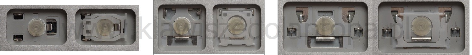 *Zdarza się, że w poszczególnych modelach klawiatury stosuje się więcej typów mocowań niż te trzy pokazane na zdjęciach; niektóre klawisze mają też metalowe zawiasy.