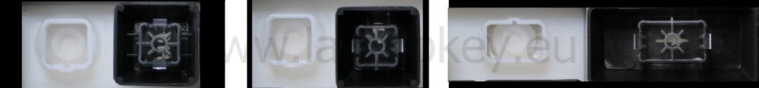 - Aby wybrać właściwy model, porównaj zdjęcie pustego miejsca na swojej klawiaturze ze zdjęciami poniżej, ewentualnie zdejmij klawisz „A” - pod nim zawsze jest zaczep średni.