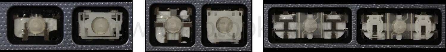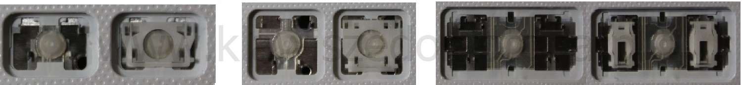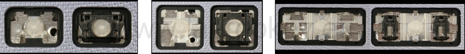 *Zdarza się, że w poszczególnych modelach klawiatury stosuje się więcej typów mocowań niż te trzy pokazane na zdjęciach; niektóre klawisze mają też metalowe zawiasy.