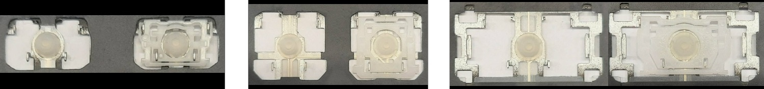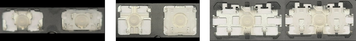 *Zdarza się, że w poszczególnych modelach klawiatury stosuje się więcej typów mocowań niż te trzy pokazane na zdjęciach; niektóre klawisze mają też metalowe zawiasy.
