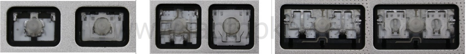 *Zdarza się, że w poszczególnych modelach klawiatury stosuje się więcej typów mocowań niż te trzy pokazane na zdjęciach; niektóre klawisze mają też metalowe zawiasy.