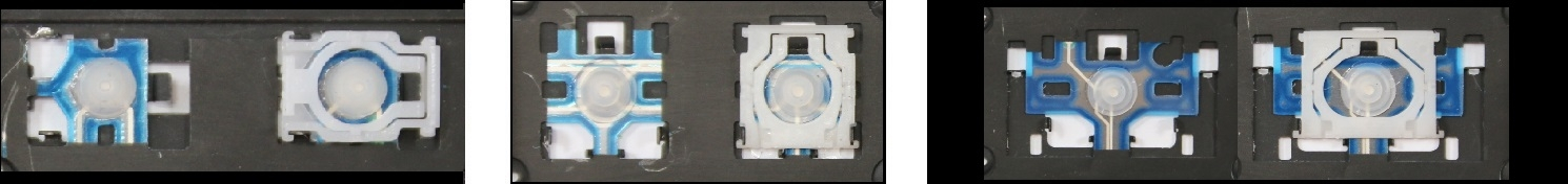 *Zdarza się, że w poszczególnych modelach klawiatury stosuje się więcej typów mocowań niż te trzy pokazane na zdjęciach; niektóre klawisze mają też metalowe zawiasy.