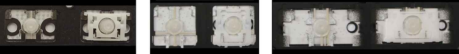 *Zdarza się, że w poszczególnych modelach klawiatury stosuje się więcej typów mocowań niż te trzy pokazane na zdjęciach; niektóre klawisze mają też metalowe zawiasy.