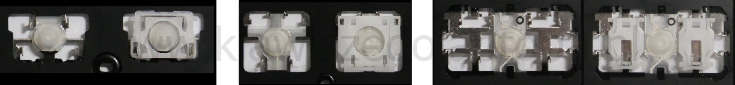 - W większości klawiatur wyglądających identycznie z zewnątrz stosowane były różne typy mocowań pod klawiszami.
