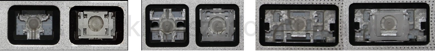*Zdarza się, że w poszczególnych modelach klawiatury stosuje się więcej typów mocowań niż te trzy pokazane na zdjęciach; niektóre klawisze mają też metalowe zawiasy.