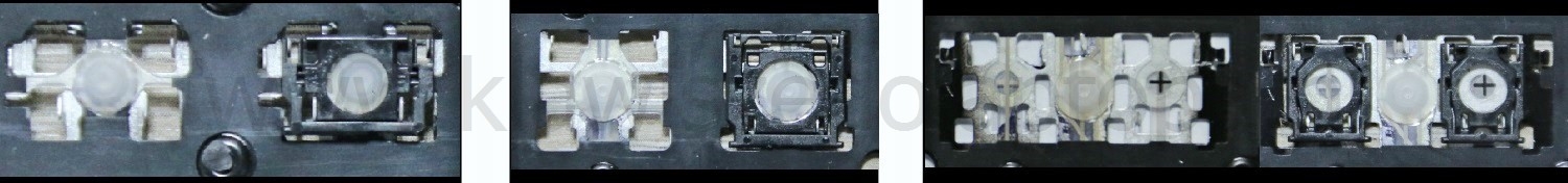 - W większości klawiatur wyglądających identycznie z zewnątrz stosowane były różne typy mocowań pod klawiszami.
