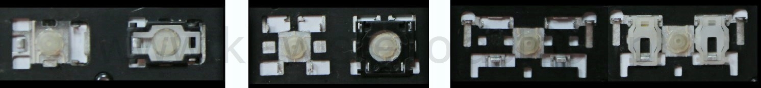 *Zdarza się, że w poszczególnych modelach klawiatury stosuje się więcej typów mocowań niż te trzy pokazane na zdjęciach; niektóre klawisze mają też metalowe zawiasy.