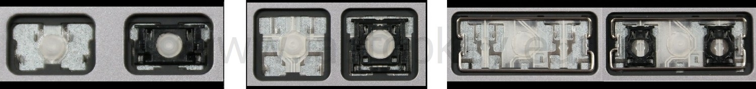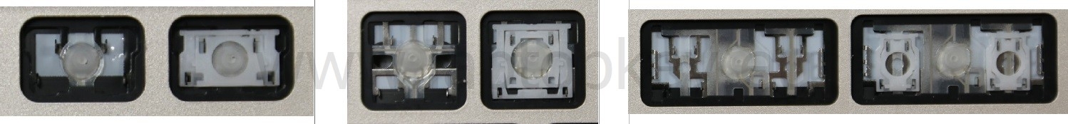*Zdarza się, że w poszczególnych modelach klawiatury stosuje się więcej typów mocowań niż te trzy pokazane na zdjęciach; niektóre klawisze mają też metalowe zawiasy.