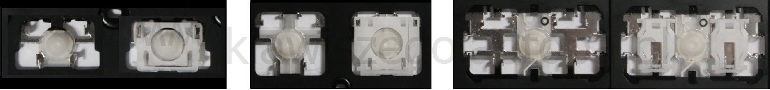 - W większości klawiatur wyglądających identycznie z zewnątrz stosowane były różne typy mocowań pod klawiszami.