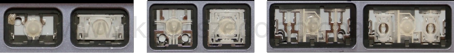*Zdarza się, że w poszczególnych modelach klawiatury stosuje się więcej typów mocowań niż te trzy pokazane na zdjęciach; niektóre klawisze mają też metalowe zawiasy.