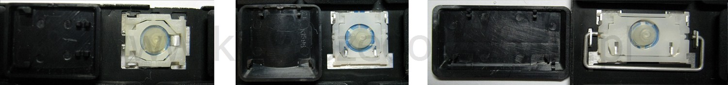 *Zdarza się, że w poszczególnych modelach klawiatury stosuje się więcej typów mocowań niż te trzy pokazane na zdjęciach; niektóre klawisze mają też metalowe zawiasy.