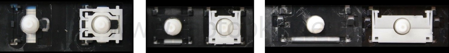 *Zdarza się, że w poszczególnych modelach klawiatury stosuje się więcej typów mocowań niż te trzy pokazane na zdjęciach; niektóre klawisze mają też metalowe zawiasy.