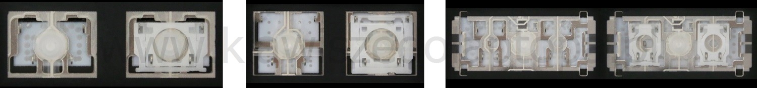 - W większości klawiatur wyglądających identycznie z zewnątrz stosowane były różne typy mocowań pod klawiszami.