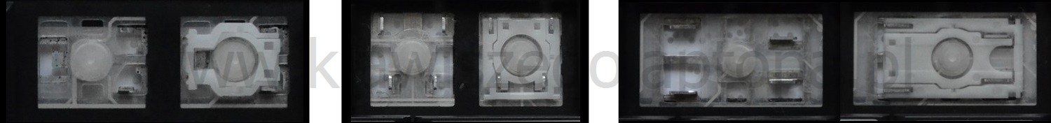 - W większości klawiatur wyglądających identycznie z zewnątrz stosowane były różne typy mocowań pod klawiszami.