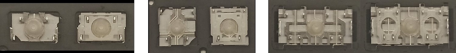 *Zdarza się, że w poszczególnych modelach klawiatury stosuje się więcej typów mocowań niż te trzy pokazane na zdjęciach; niektóre klawisze mają też metalowe zawiasy.