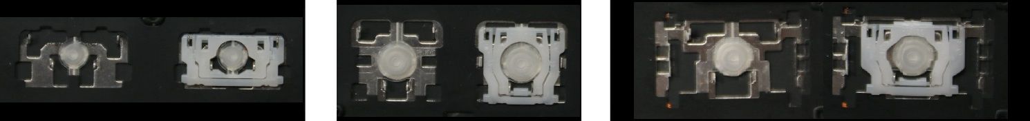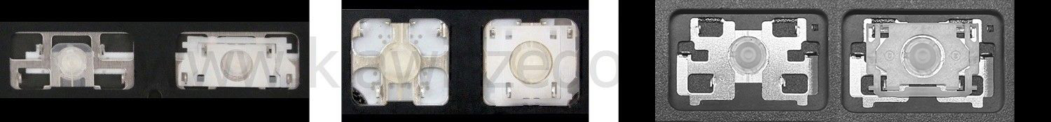 *Zdarza się, że w poszczególnych modelach klawiatury stosuje się więcej typów mocowań niż te trzy pokazane na zdjęciach; niektóre klawisze mają też metalowe zawiasy.