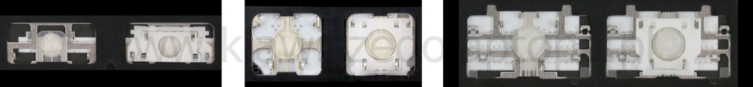 *Zdarza się, że w poszczególnych modelach klawiatury stosuje się więcej typów mocowań niż te trzy pokazane na zdjęciach; niektóre klawisze mają też metalowe zawiasy.