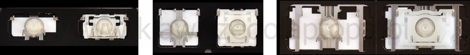 - W większości klawiatur wyglądających identycznie z zewnątrz stosowane były różne typy mocowań pod klawiszami.