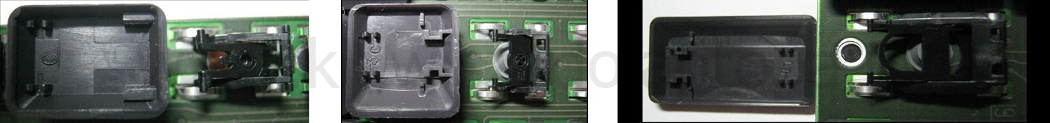 - W większości klawiatur wyglądających identycznie z zewnątrz stosowane były różne typy mocowań pod klawiszami.