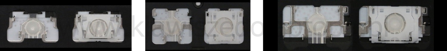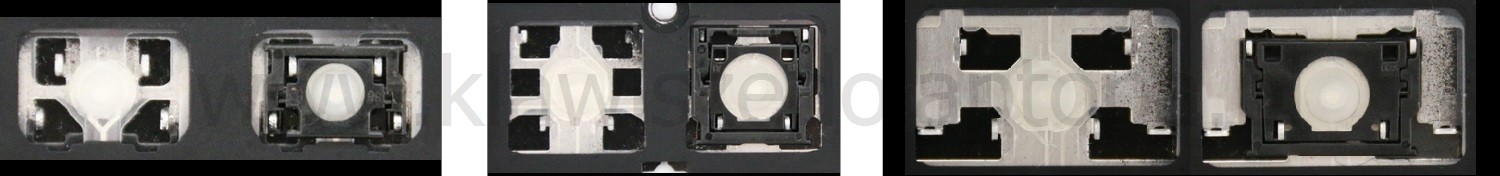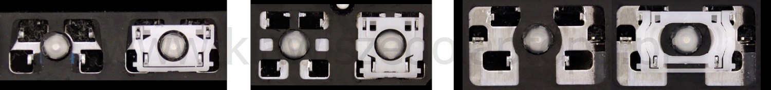 *Zdarza się, że w poszczególnych modelach klawiatury stosuje się więcej typów mocowań niż te trzy pokazane na zdjęciach; niektóre klawisze mają też metalowe zawiasy.