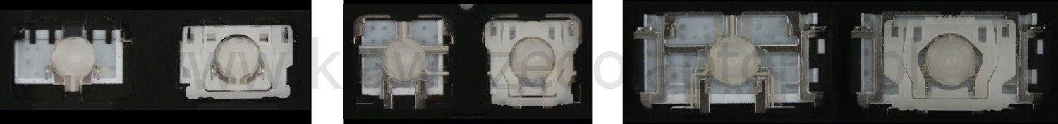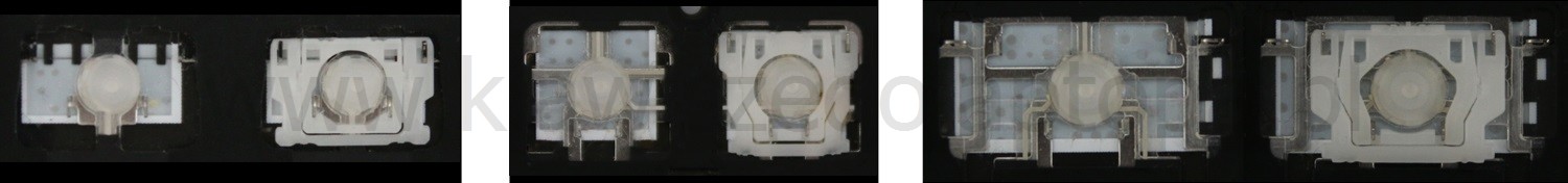 - W większości klawiatur wyglądających identycznie z zewnątrz stosowane były różne typy mocowań pod klawiszami.