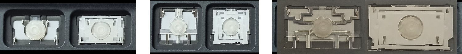 *Zdarza się, że w poszczególnych modelach klawiatury stosuje się więcej typów mocowań niż te trzy pokazane na zdjęciach; niektóre klawisze mają też metalowe zawiasy.