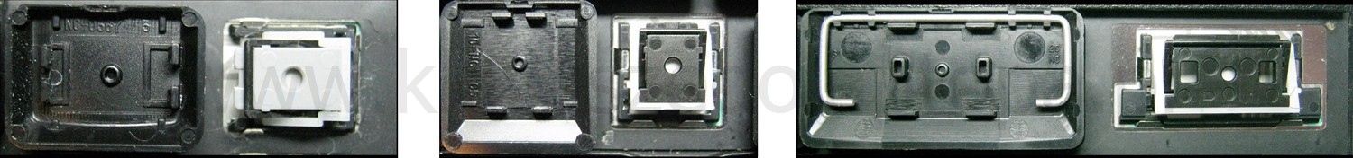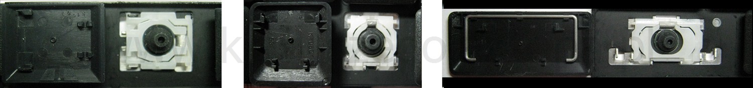 *Zdarza się, że w poszczególnych modelach klawiatury stosuje się więcej typów mocowań niż te trzy pokazane na zdjęciach; niektóre klawisze mają też metalowe zawiasy.
