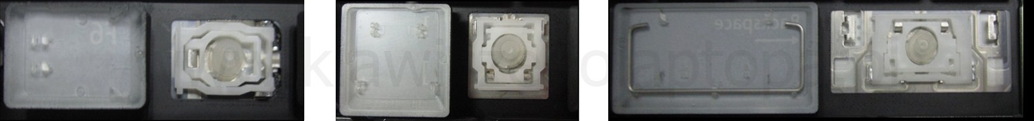 *Zdarza się, że w poszczególnych modelach klawiatury stosuje się więcej typów mocowań niż te trzy pokazane na zdjęciach; niektóre klawisze mają też metalowe zawiasy.