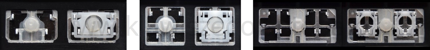 - W większości klawiatur wyglądających identycznie z zewnątrz stosowane były różne typy mocowań pod klawiszami.