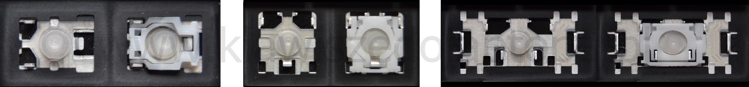 *Zdarza się, że w poszczególnych modelach klawiatury stosuje się więcej typów mocowań niż te trzy pokazane na zdjęciach; niektóre klawisze mają też metalowe zawiasy.