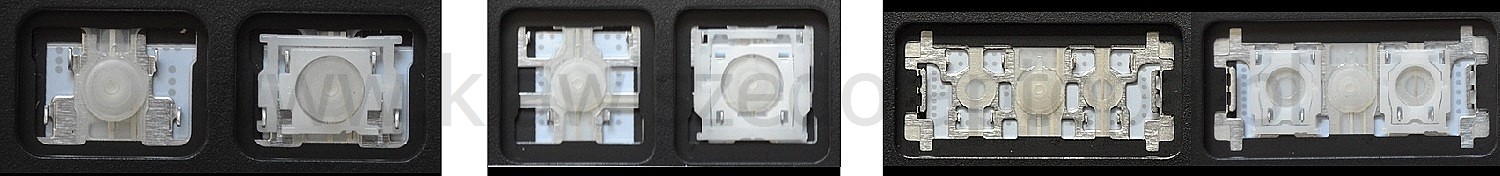 *Zdarza się, że w poszczególnych modelach klawiatury stosuje się więcej typów mocowań niż te trzy pokazane na zdjęciach; niektóre klawisze mają też metalowe zawiasy.