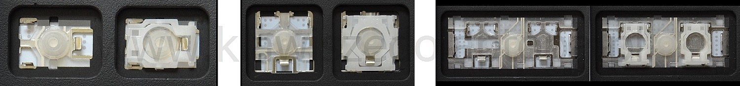 - W większości klawiatur wyglądających identycznie z zewnątrz stosowane były różne typy mocowań pod klawiszami.