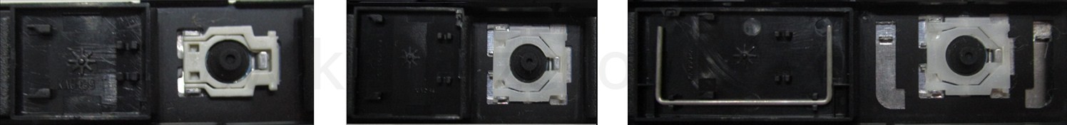 - Aby wybrać właściwy model, porównaj zdjęcie pustego miejsca na swojej klawiaturze ze zdjęciami poniżej, ewentualnie zdejmij klawisz „A” - pod nim zawsze jest zaczep średni.