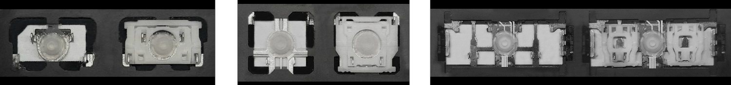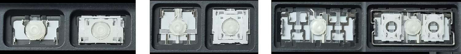 *Zdarza się, że w poszczególnych modelach klawiatury stosuje się więcej typów mocowań niż te trzy pokazane na zdjęciach; niektóre klawisze mają też metalowe zawiasy.