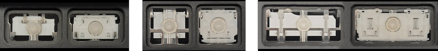 - Aby wybrać właściwy model, porównaj zdjęcie pustego miejsca na swojej klawiaturze ze zdjęciami poniżej, ewentualnie zdejmij klawisz „A” - pod nim zawsze jest zaczep średni.
